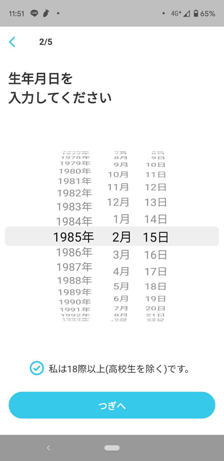 さらに生年月日を入力します。