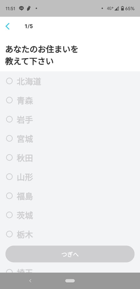性別を選んだら住んでいる地域(活動する地域)を選びます。