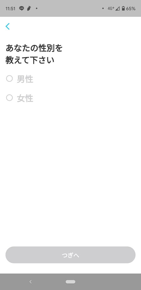 ボタンを押すと性別を聞かれるので選びます。