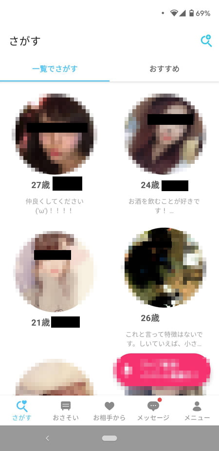 好みの年齢などを設定して検索すると、女性がわんさか表示されます。