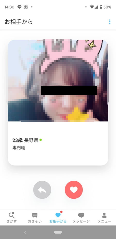 アダルトジャンルを捨てているので、そっち方面の出会いに関してはPCMAXやハッピーメールのようなガチな出会い系に比べて劣っているんですよね。