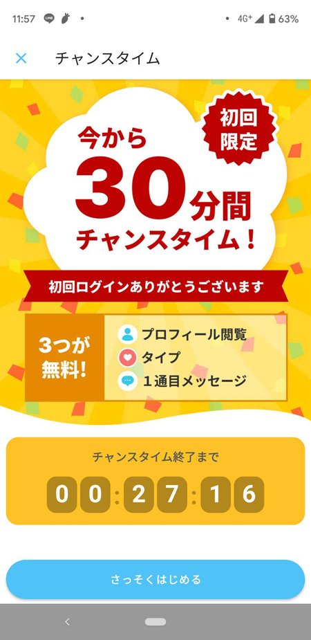 登録後すぐに30分間のチャンスタイムが始まります。