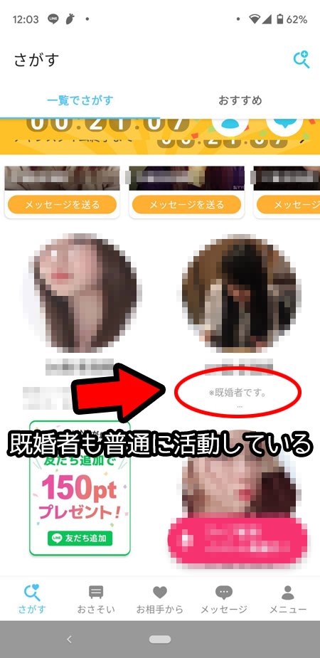 ところが、真面目な恋愛サービスを目指していたと思いきや堂々と既婚者利用OKにしていたり、未だにパパ活や援交目的もチラホラ見かけるという、どっちつかずな状態が今日まで続いてきました。